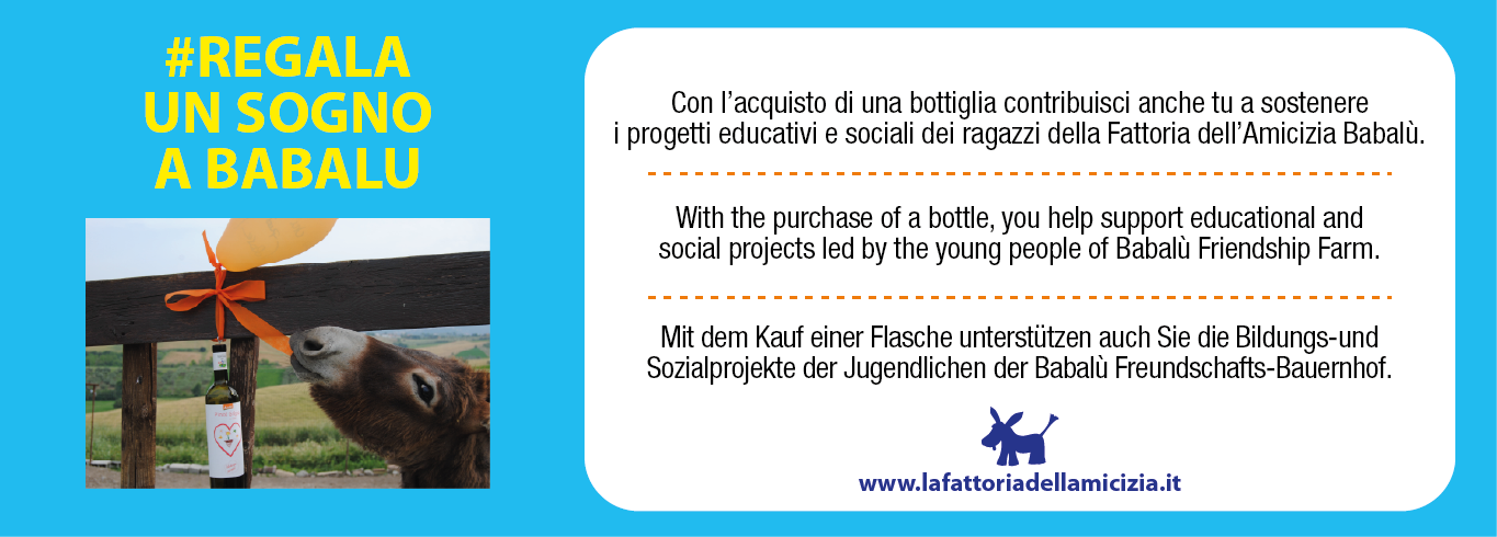 assortiti casualmente: ciascuna bottiglia è personalizzata con il disegno e il sogno di un ragazzo della Fattoria dell'Amicizia.