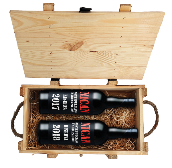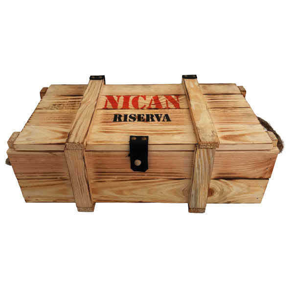 Cofanetto in legno personalizzato con logo NICAN adatto esclusivamente ai i vini Nican Riserva 2017, 2018 e 2019